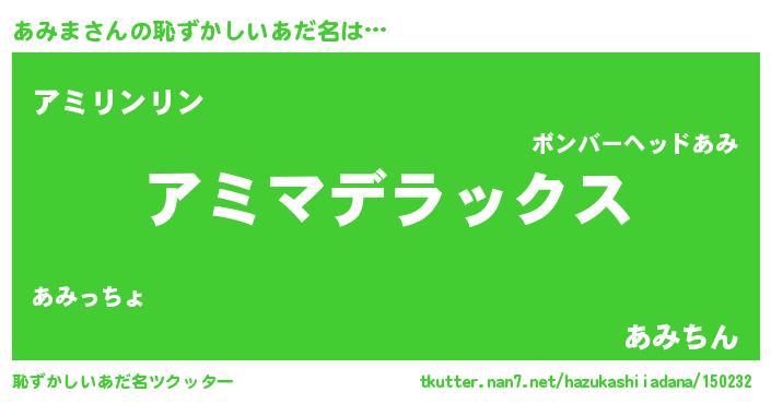 | ヘコむあだ名 | 『あみっぺ』『あみま(小並感)』 |