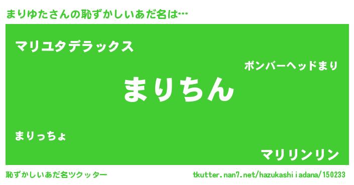 意味不明あだ名 | 『永久保存まりゆた』『自称まりゆた』 |