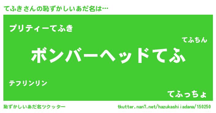 | ヒーロー風カッコイイあだ名 | 『愛の使者てふき』『スーパーテフキ』 |