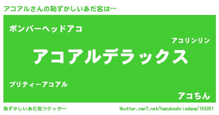 | ヘコむあだ名 | 『アコアル(笑)』『アコを』 |