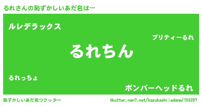| ヘコむあだ名 | 『るれ(爆)』『るれもー』『酢こんぶ』 |