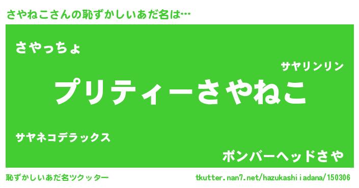 | ファンタジー風あだ名 | 『サヤフェル』『エターナルサヤネコー』 |