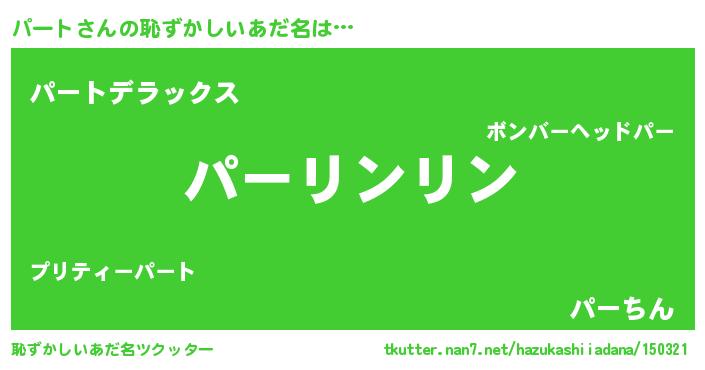 | 意味不明あだ名 | 『とにかく怪しいパート』『自称パート』 |