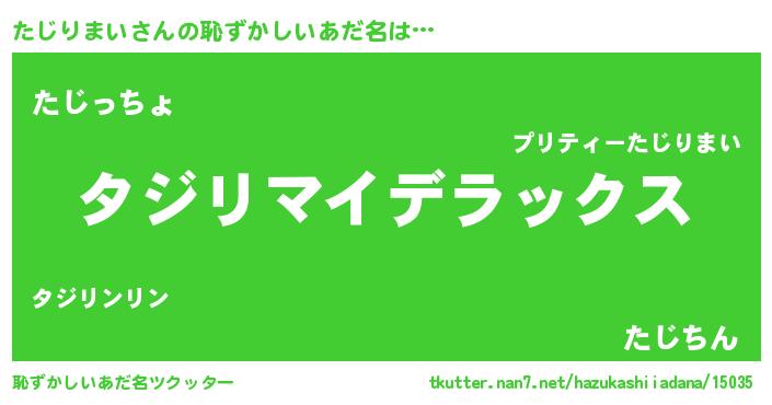 | 意味不明あだ名 | 『自称たじりまい』『永久保存たじりまい』 |