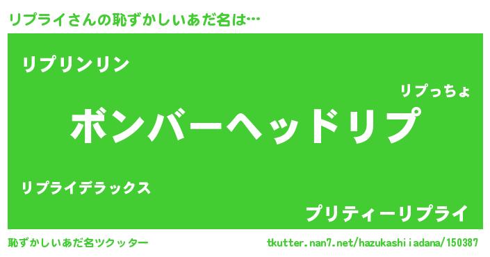 | ヘコむあだ名 | 『リプを』『リプふぇ~』『レバニラ』 |