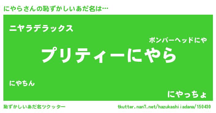 | ポケモン風あだ名 | 『ニヤチュウ』『ニヤセウス』 |
