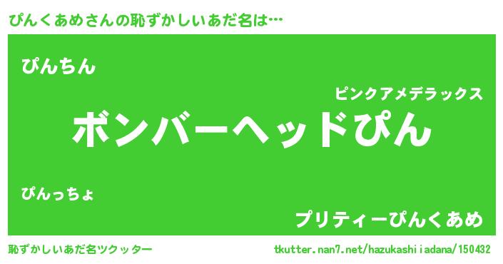 | ヒーロー風カッコイイあだ名 | 『慈愛の使者ぴんくあめ』『仮面ピンダー』 |