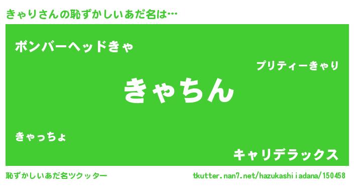 | 意味不明あだ名 | 『永久保存きゃり』『自称きゃり』 |