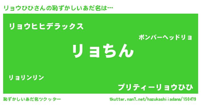| ヘコむあだ名 | 『リョウひひ(苦笑)』『リョにゅー』 |