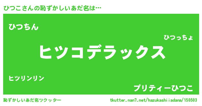 | 男性向けラノベタイトル風あだ名 | 『Re:ひつこから始める異世界生活』 |