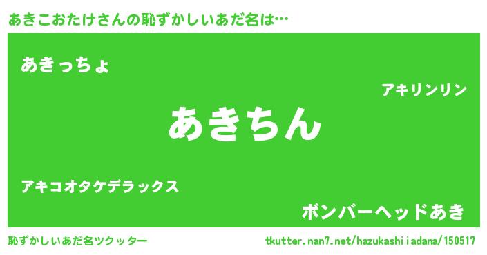 | 意味不明あだ名 | 『永久保存あきこおたけ』 |