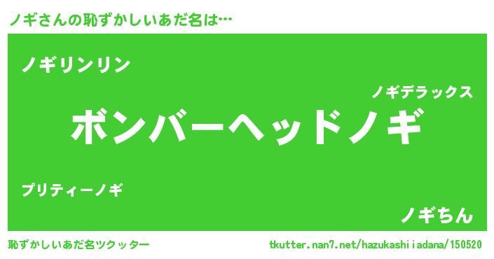 | 男性向けラノベタイトル風あだ名 | 『緋弾のノギ』『ノギスレイヤー』 |