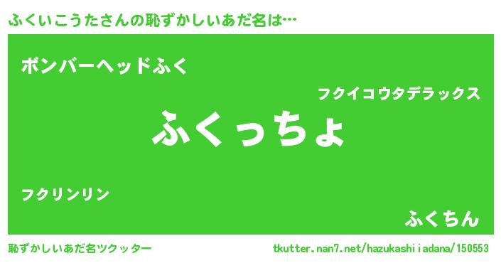| 意味不明あだ名 | 『ふくいこうたフォーエバー』 |
