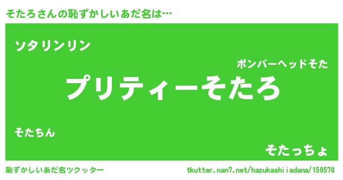 | ヒーロー風カッコイイあだ名 | 『スーパーソタロ』『暗黒騎士ソタ』 |