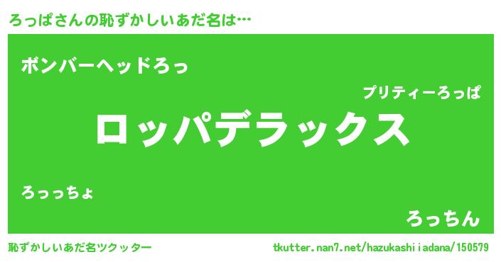 | ヘコむあだ名 | 『ろっぱ(爆)』『ろっにー』『豆乳』 |
