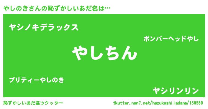 | 意味不明あだ名 | 『永久保存やしのき』『自称やしのき』 |