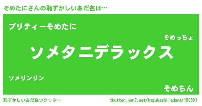 | ヒーロー風カッコイイあだ名 | 『最強戦士ソメタニ』『仮面ソメダー』 |