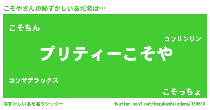| ヘコむあだ名 | 『こそにー』『こそや(遠い目)』 |