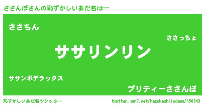 | ヘコむあだ名 | 『ささぷりん』『ささんぼ(笑)』 |