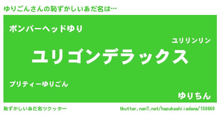| 意味不明あだ名 | 『自称ゆりごん』『永久保存ゆりごん』 |