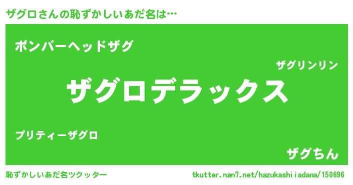 | 意味不明あだ名 | 『自称ザグロ』『しいたけ科ザグロ属』 |