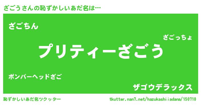 | ヘコむあだ名 | 『ざごにー』『ざごう(笑)』『つくし』 |