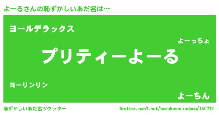 | 男性向けラノベタイトル風あだ名 | 『よーるの憂鬱』『はたらくよーるさま!』 |