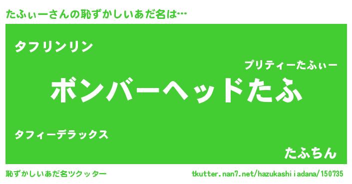 | ヘコむあだ名 | 『たふぷりん』『たふぃー(震え声)』 |