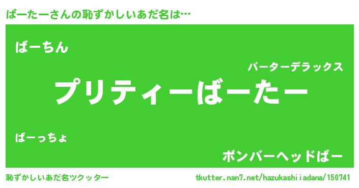 | 意味不明あだ名 | 『ペロリンばーたー』『永久保存ばーたー』 |