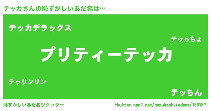 | 意味不明あだ名 | 『ペロリンテッカ』『自称テッカ』 |