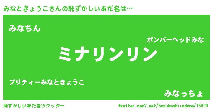 | 意味不明あだ名 | 『とにかく怪しいみなときょうこ』 |