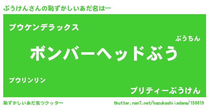 | ヒーロー風カッコイイあだ名 | 『天空の使者ぶうけん』『仮面ブウダー』 |