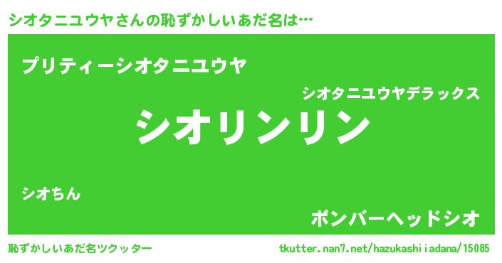 | 意味不明あだ名 | 『とにかく怪しいシオタニユウヤ』 |