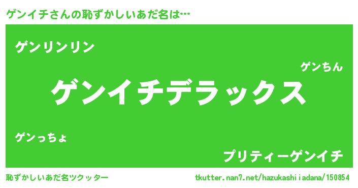 | 男性向けラノベタイトル風あだ名 | 『うちのゲンイチが世界を掌握している!』 |