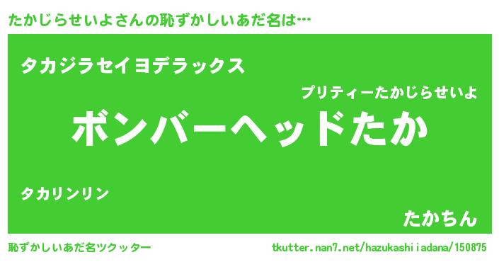 | ヘコむあだ名 | 『たかじらせいよ(笑)』『たかふぇ~』 |