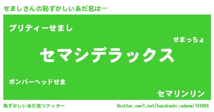 | 意味不明あだ名 | 『自称せまし』『住所不定無職せまし(4歳)』 |