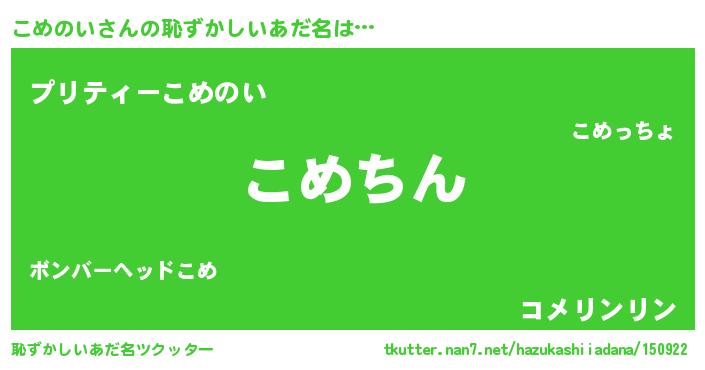 | ヘコむあだ名 | 『こめのい(苦笑)』『こめもー』 |