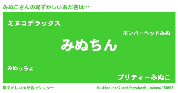 | 意味不明あだ名 | 『永久保存みぬこ』『自称みぬこ』 |
