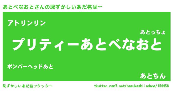 | ヘコむあだ名 | 『あとにゅー』『あとっぺ』『豆乳』 |