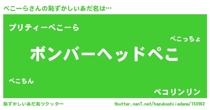| ヒーロー風カッコイイあだ名 | 『正義の使者ぺこーら』『仮面ペコダー』 |
