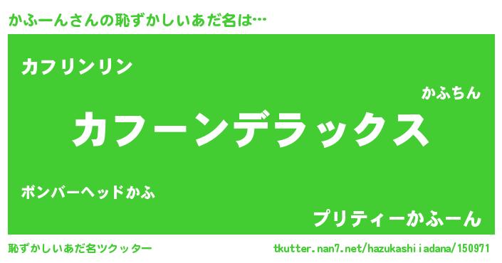 | ヘコむあだ名 | 『かふぷりん』『かふにー』『つくし』 |