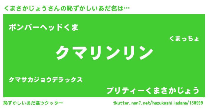 | 意味不明あだ名 | 『とにかく怪しいくまさかじょう』 |
