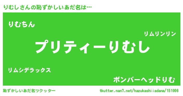 | ヘコむあだ名 | 『りむふぇ~』『りむし(遠い目)』 |