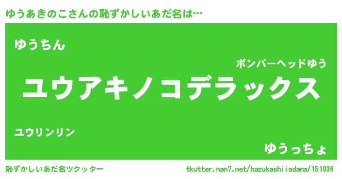 | 可愛いあだ名 | 『ゆううちぇる』『ゆうあきのこママ』 |