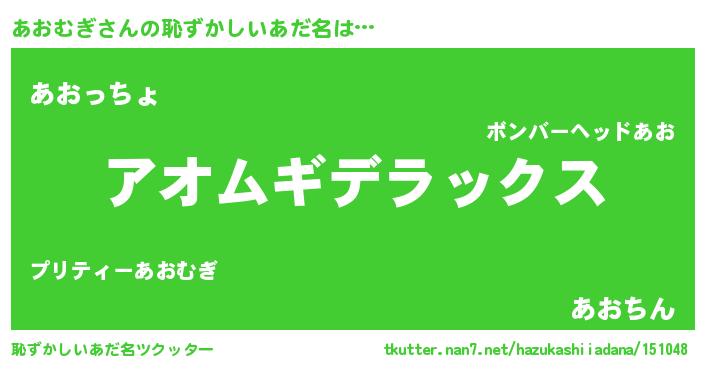 | 胡散臭い通販商品みたいなあだ名 | 『ガンによく効く高麗人参…その名も「あおむぎ」』 |