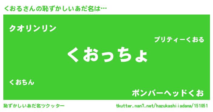 | 意味不明あだ名 | 『くおるフォーエバー』『ペロリンくおる』 |