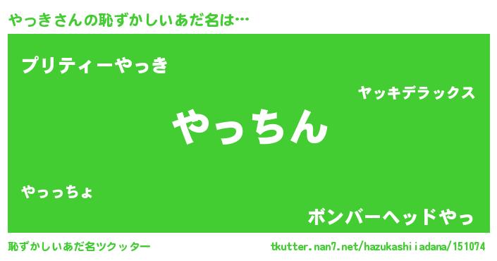 | ヘコむあだ名 | 『やっき(笑)』『やっにー』『つくし』 |