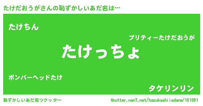 | 可愛いあだ名 | 『たけちー』『たけだおうがママ』 |