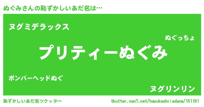 | 意味不明あだ名 | 『ペロリンぬぐみ』『自称ぬぐみ』 |