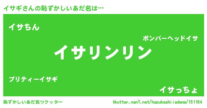 | ヘコむあだ名 | 『イサぷりん』『イサギ(苦笑)』 |